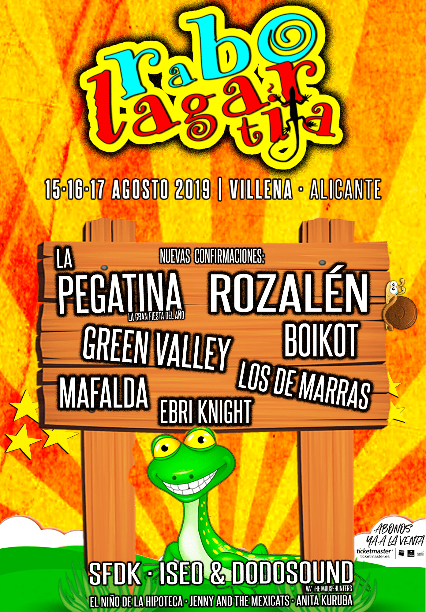 Rabolagartija Festival, que se celebrará en el polideportivo municipal de Villena (Alicante) los próximos 15, 16 y 17 de agosto de 2019, sigue dando a conocer las bandas que formarán parte del cartel de su quinto aniversario.