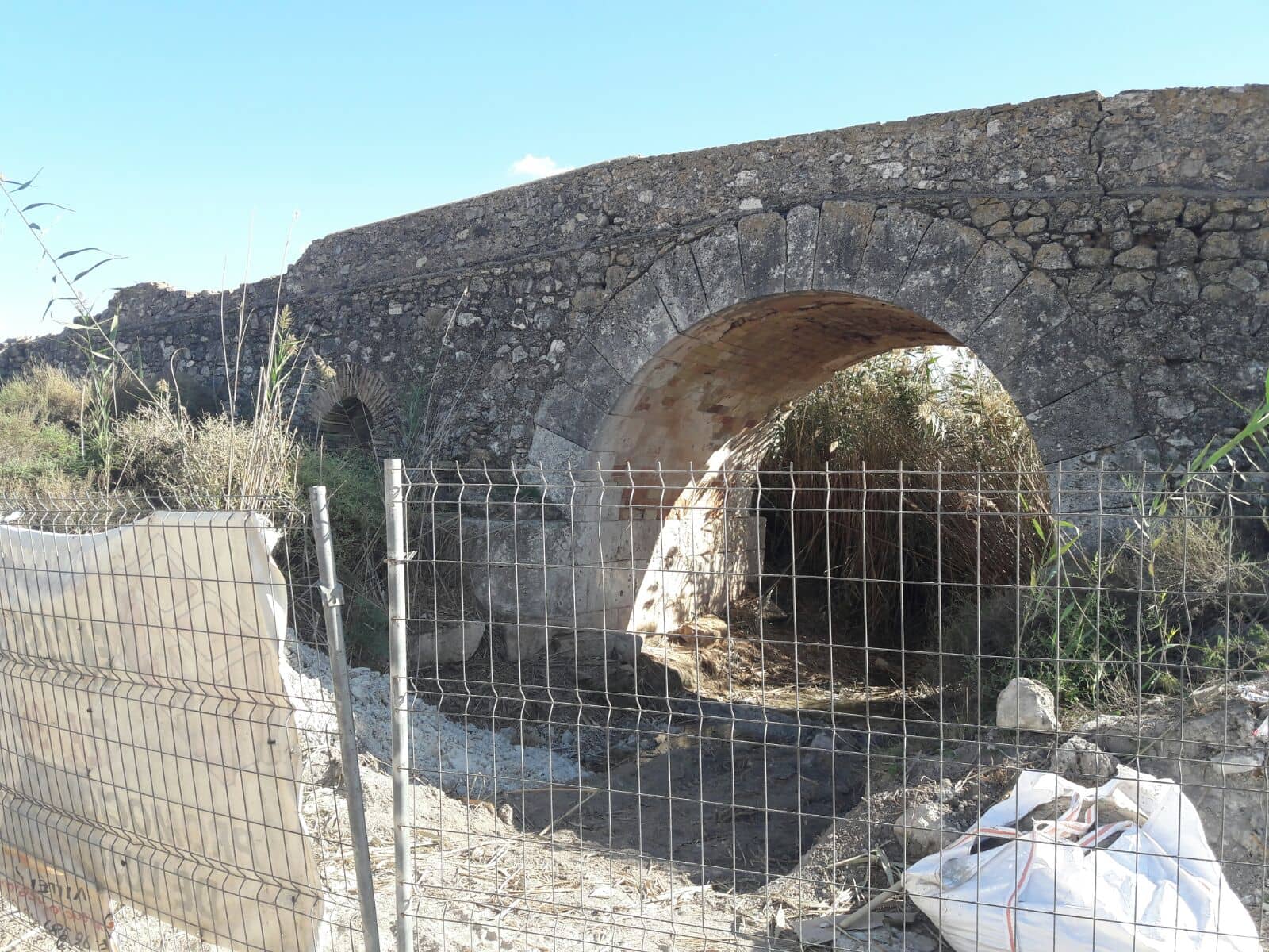 Las obras de rehabilitación del Puente de los Espejos en el paraje de La Lagunilla de Villena se han reanudado tras nueve meses de paralización, desde las copiosas lluvias y la nevada que cayó en la población en enero.