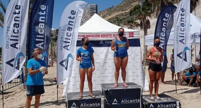 Rebeca Cabanes, nadadora del Club Natación Villena se proclamaba campeona en su categoría de la Travesía de la Cantera de Aguas abiertas celebrada este pasado domingo en la playa de la albufereta. Prueba que consistia en un circuito balizado de ida y vuelta entre las playas de la albufereta y la del postiguet, con 4000 m. de recorrido, donde Rebeca se alzaba con la primera posición.
