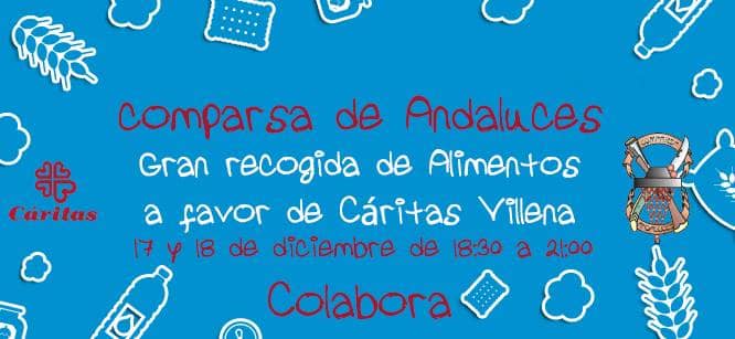 Durante el jueves 17 de diciembre y viernes 18 de diciembre, la comparsa de Andaluces va a realizar una recogida de alimentos a beneficio de caritas.