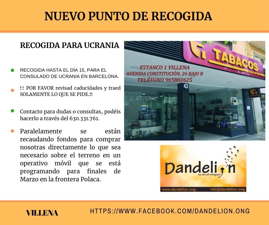 Dandelion de Villena y otras asociaciones a nivel estatal mueven ficha y ya se han puesto manos a la obra y se han movilizado con el objetivo de poder prestar auxilio a la crisis que se vive en territorio ucraniano.