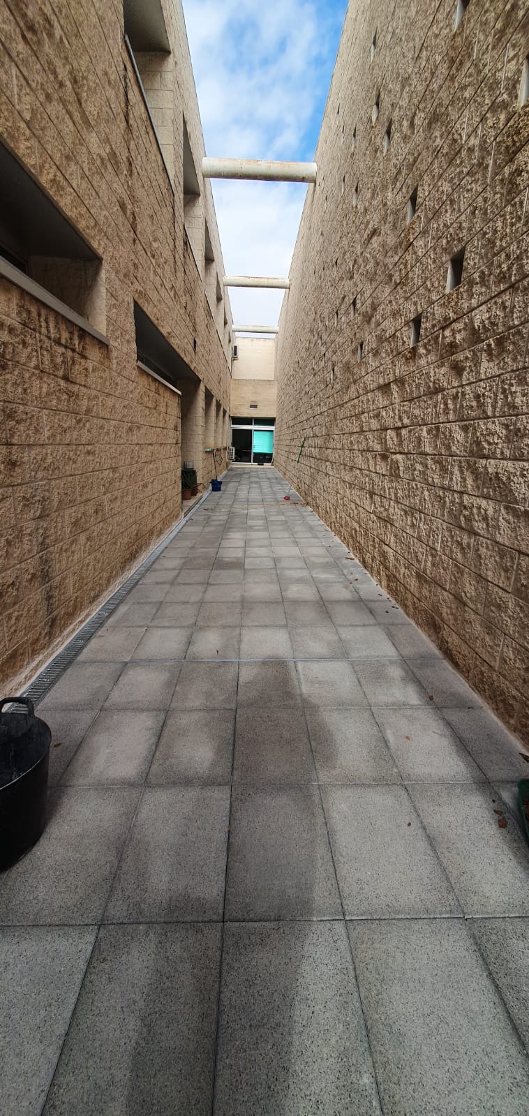 El objetivo de la actuación ha contemplado la reparación de los daños registrados en las zonas colindantes a los patios de Observación de Urgencias, Radiología y Gimnasio de Rehabilitación del Centro Sanitario Integrado. Las inspecciones y catas realizadas determinaron que el asentamiento del muro de contención perimetral del patio de Observación de Urgencias había provocado grietas y fisuras tanto en los paramentos como en las correas de atado de la cimentación.
