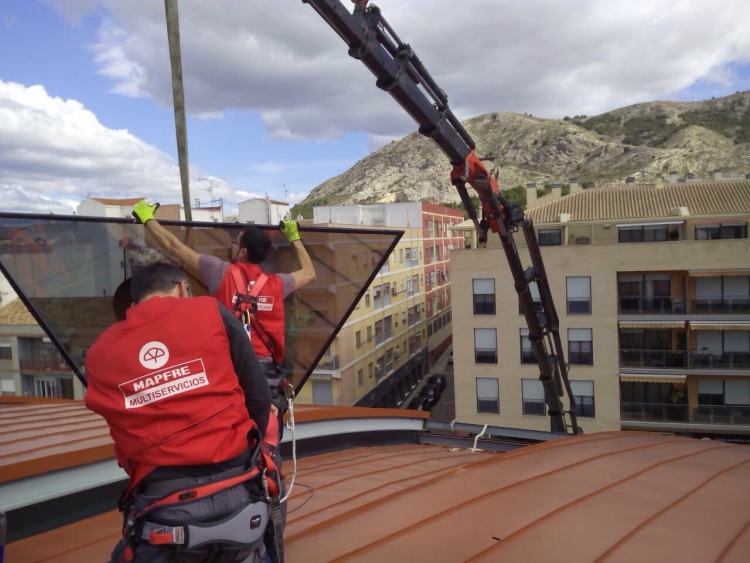 Dos años y medio después de la rotura de uno de los cristales de la cúpula de la Plaza de Toros ha sido reparado.