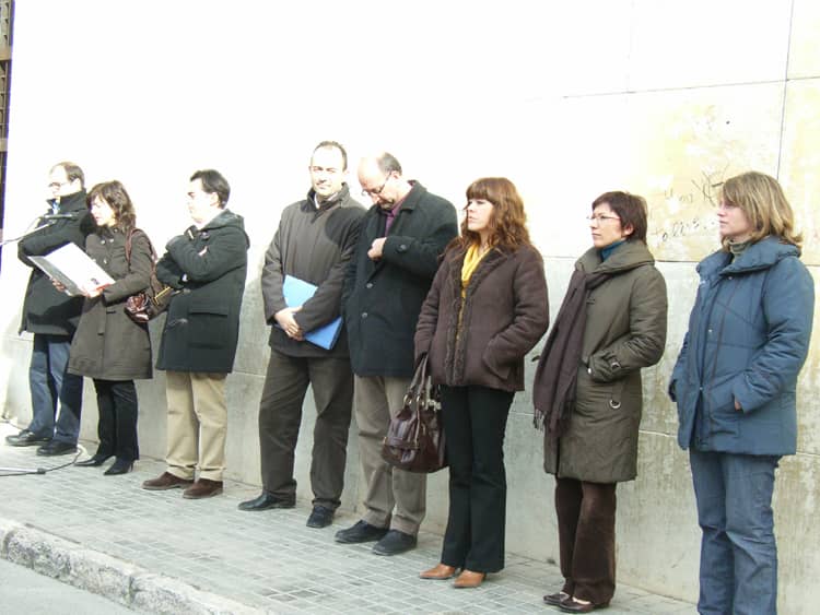 La corporación municipal junto a un grupo de ciudadanos se han reunido en la plaza de Santiago para mostrar su repulsa contra el último atentado perpetrado por la banda terrorista ETA en Azpeitia contra el empresario, Ignacio Uria era dueño de una de las empresas adjudicatarias de las obras del AVE en el País Vasco.