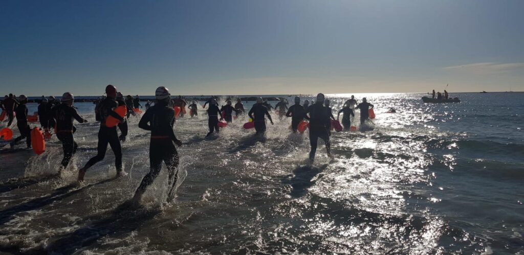 Ricardo Domene, del Promesas Villena participaba en esta prueba, dada su afición en la disciplina de la natación. Con un día espléndido de sol y una mar en calma que permitía desarrollar una buena natación.