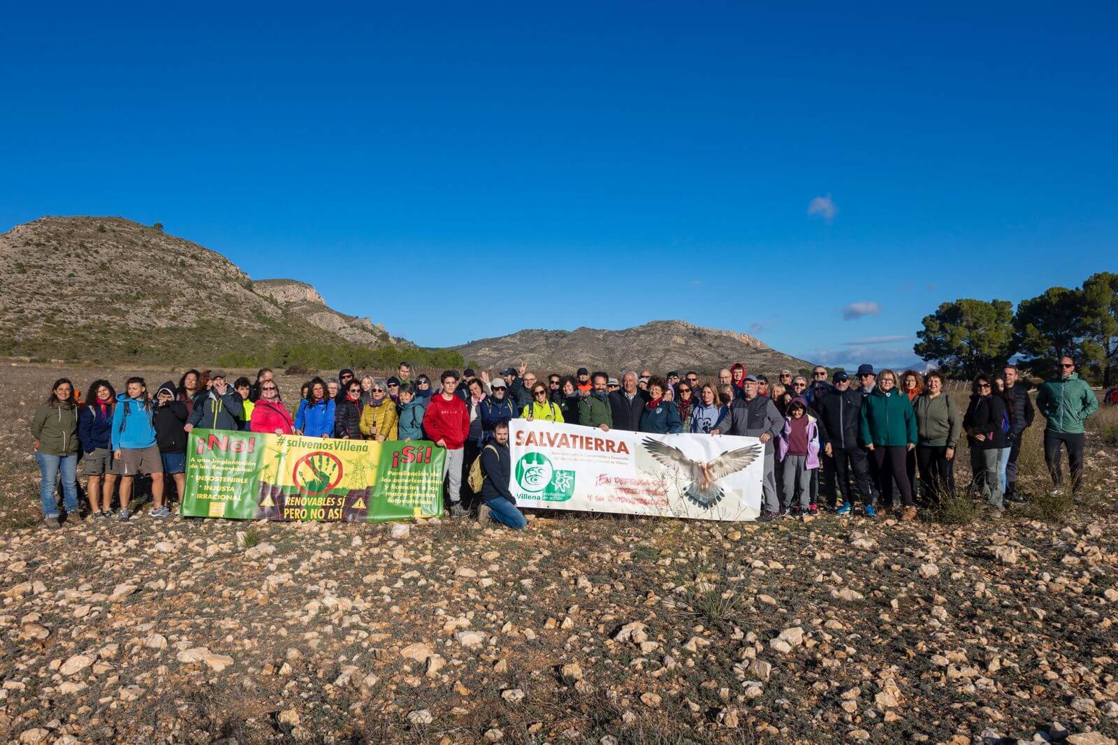 El pasado sábado 8 de noviembre, cerca de ochenta personas nos reunimos en el valle de Villena para recorrer, en cuatro paradas, el territorio amenazado por los proyectos de macroplantas fotovoltaicas. Fue una jornada de encuentro y de conciencia, un caminar compartido entre almendros y cerezos arrancados, lomas y horizontes abiertos, donde la tierra habló a través de quienes la habitan y la sienten suya. En cada parada, a la sombra de los pinares o frente a los antiguos campos de cultivo ahora explanados y compactados, se explicó la situación de los distintos proyectos y se compartió información sobre las alegaciones que la Asociación Salvatierra ha presentado para intentar frenar esta transformación del paisaje.