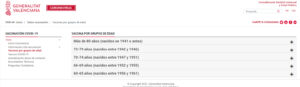 Así, desde el enlace consultar aquí de la página web de la Conselleria de Sanidad, se puede acceder al apartado vacunación por grupos de edad que se irá actualizando semanalmente.