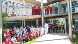 Esta mañana en el Centro Sanitario Integrado de Villena se han reunido personal sanitario, cuerpos de seguridad y voluntariado local mostrando unidad para hacer frente al Covid-19.
