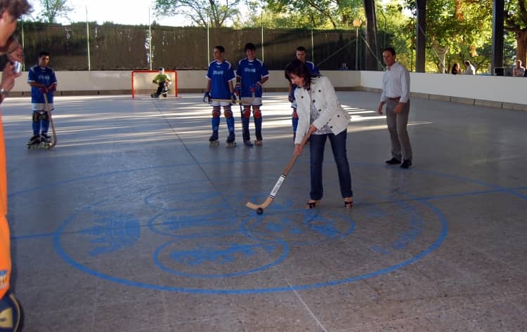 Posteriormente al acto de inauguración, la alcaldesa , ha sido la personalidad elegida para que, poco antes del comienzo del partido de la Liga Oficial Autonómica de categoría infantil de Hockey sobre patines, efectuara el saque de honor.