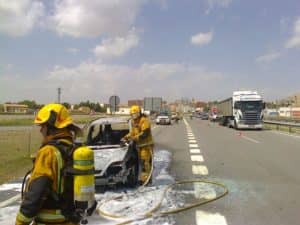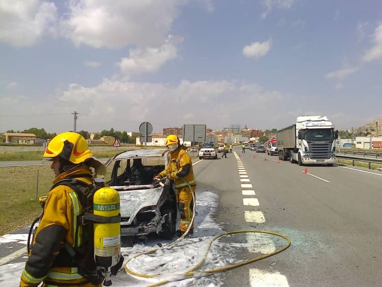 Sobre las 14:25 los bomberos de Villena recibían el aviso del incendio de un vehículo en la A-31 sentido a Alicante, a la altura de la salida Villena-Biar, de inmediato una dotación compuesta por un cabo y tres bomberos a bordo de un vehículo autobomba, han acudido a la zona encontrándose el vehículo envuelto en llamas como muestran las imágenes, los bomberos han extinguido las llamas en pocos minutos, mientras los miembros de la DGT. Aseguraban la zona y dirigían el tráfico. No se han registrado heridos.