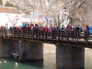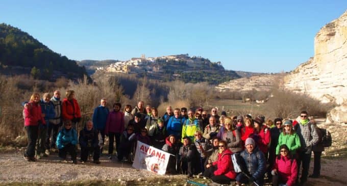 El segundo “día de puertas abiertas de Aviana” nos llevó a 70 personas a caminar desde La Jorquera por la orilla del río Júcar hasta Alcalá del Júcar. Mientras crecía la mañana y se evaporaba la escarcha de la noche, ligeras brumas nos acompañaban en el camino. Las formaciones que ha construido el rio en esta parte de la Mancha es un paréntesis de roquedos en una llanura, donde el rio encajonado y serpenteante desciende poco a poco hasta el mar.