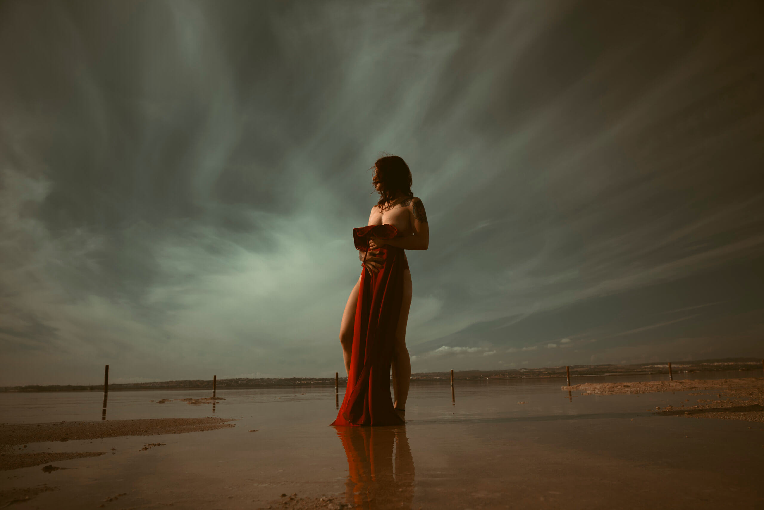 “Serenidad” con Tati Galvañ como modelo es una invitación a sumergirse en la paz y la elegancia. La imagen, que presenta a una figura central vestida con un llamativo vestido rojo sobre un paisaje de tonos suaves, simboliza el poderoso equilibrio entre fortaleza interior y calma. La composición destaca por su capacidad para evocar introspección y serenidad, conectando con el espectador de una manera única y profunda.