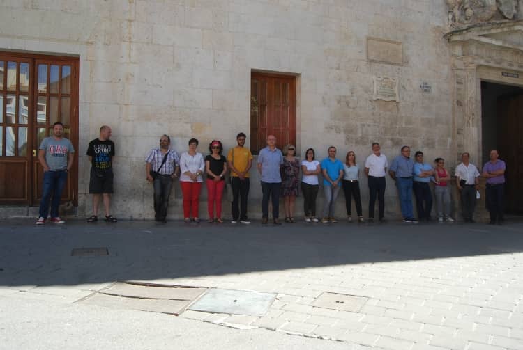Hace escasos minutos se ha celebrado un minuto de silencia en la fachada del Ayuntamiento de Villena convocado por la Federación de Municipios y Provincias. En él han estado presentes parte de la corporación municipal que se encontraba en el edificio, varios trabajadores municipales y algún ciudadano y ciudadana que pasaban por el lugar y han querido sumarse a la concentración. Ha sido un acto de repulsa frente al atentado terrorista sufrido en un club de la ciudad de Orlando que ha dejado al menos 50 personas muertas y 53 heridas. El Alcalde ha explicado al público concentrado que “este es un acto de repulsa frente al atentado de Orlando y frente a otros tantos atentados terroristas que por suceder en otros lugares del planeta no trascienden a gran parte de la ciudadanía”.