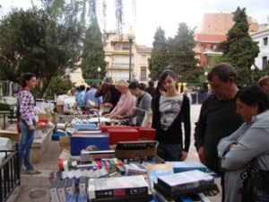 Durante toda la jornada del sábado en la plaza de las Malvas, se llenó de libros, películas, bolsos, en un rastrillo para recaudar fondos para APAC.
