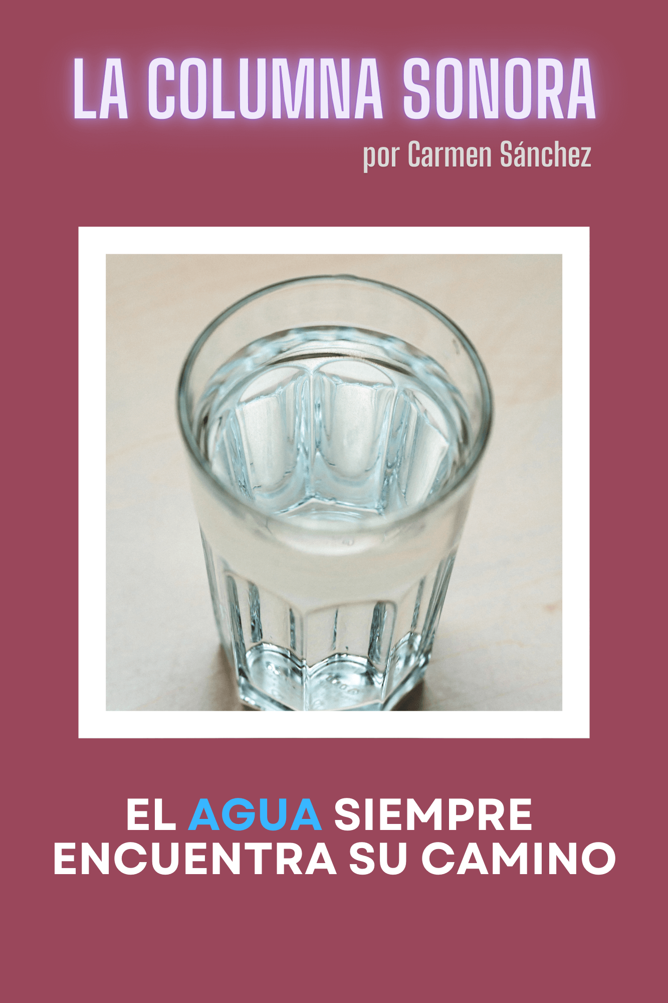 Esta semana, Carmen Sánchez nos habla del agua, y de cómo se imagina la fiesta que se monta en nuestro cuerpo cuando bebemos un vaso de agua. El naturalista Joaquín Araújo decía: “somos agua que piensa”.