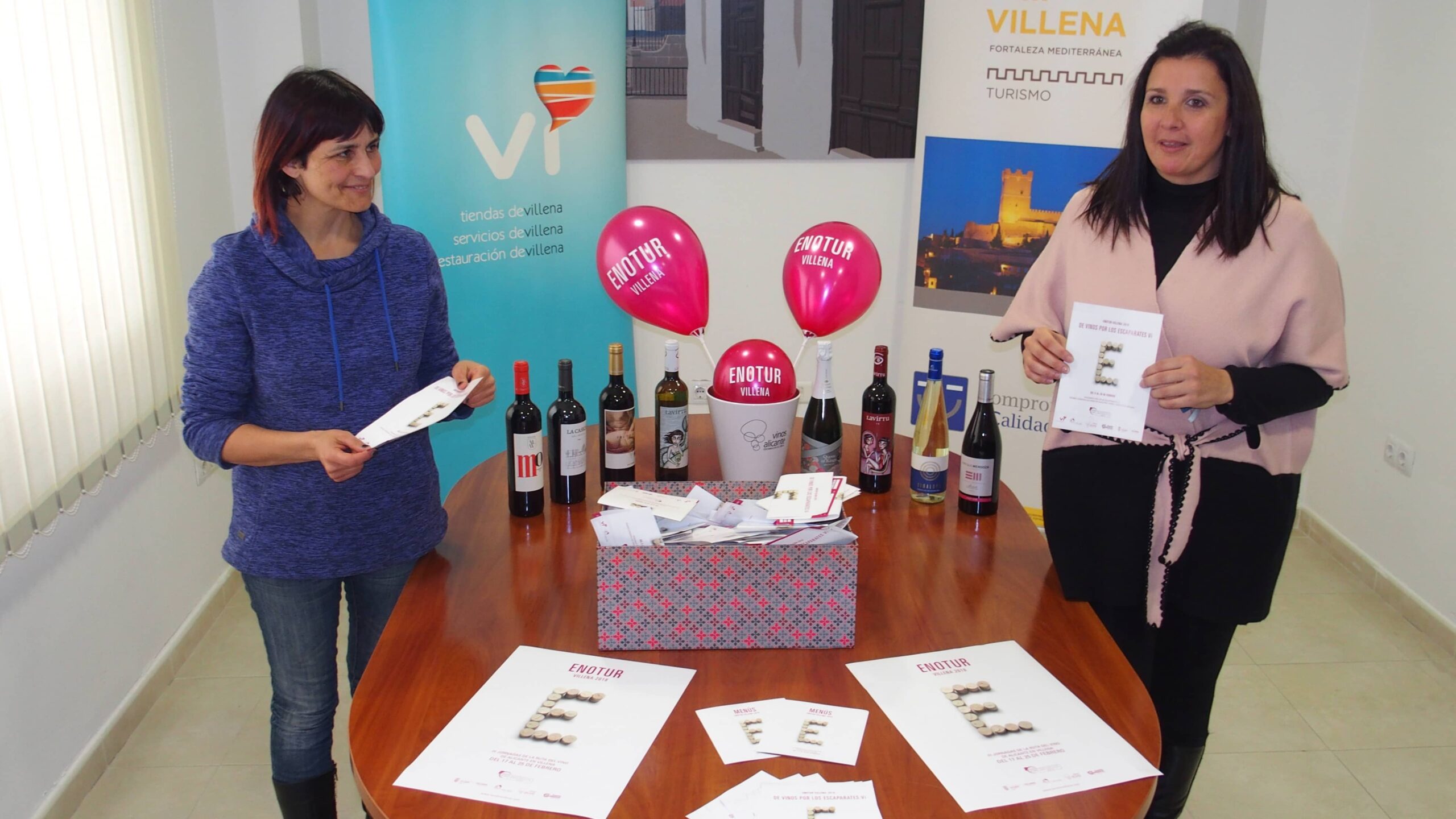 La concejala de Turismo, Mercedes Menor, junto a la técnica de Comercios y Servicios Vi, Mari Ángeles García, han efectuado el sorteo de los lotes enoturísticos de la campaña “De vinos por los escaparates Vi” celebrada durante Enotur.