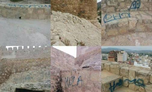 El Ayuntamiento de Villena limpia las pintadas aparecidas en el Castillo