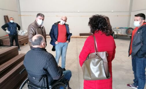 El alcalde de Villena, Fulgencio Cerdán, y la edil de Sanidad, Alba Laserna, acompañados por el edil de Hacienda, Juan José Olivares, han visitado hoy el Recinto Ferial donde se