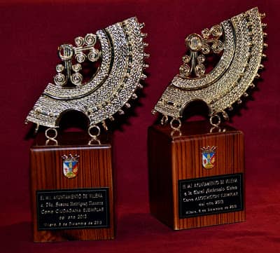 La científica villenense Nuria Ferrándiz y la Agrupación Teatral Aquilino Juan Ocaña reciben la Arracada