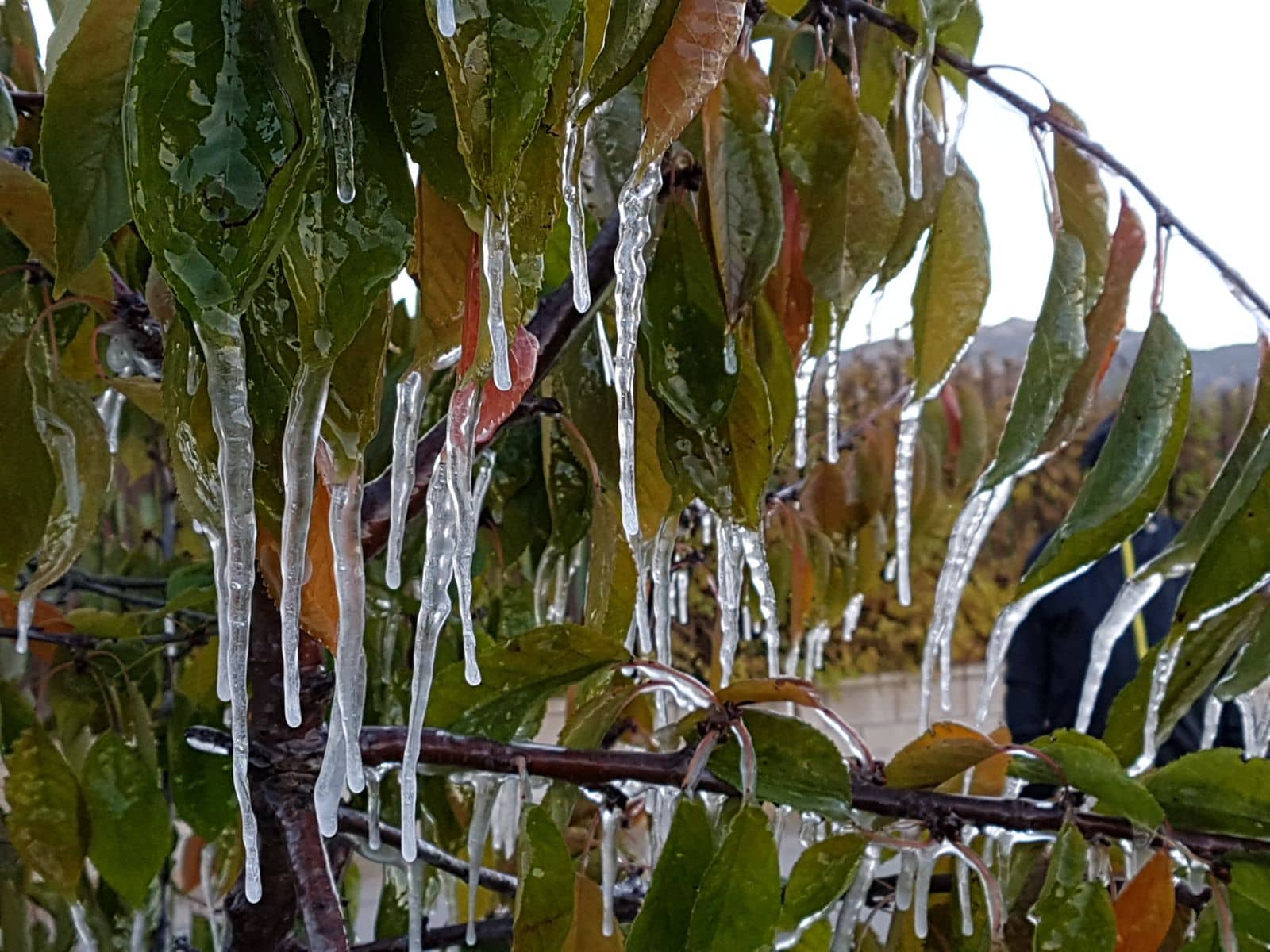 Las temperaturas en Villena bajaron en la noche de ayer hasta los -5 grados. Asi, el hielo se adueñó de los cultivos. El termómetro no subió a lo largo de
