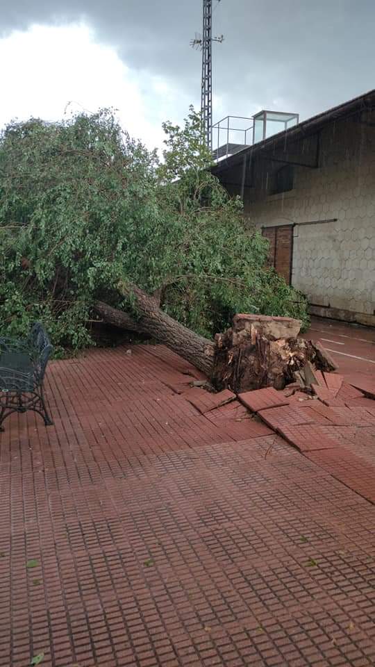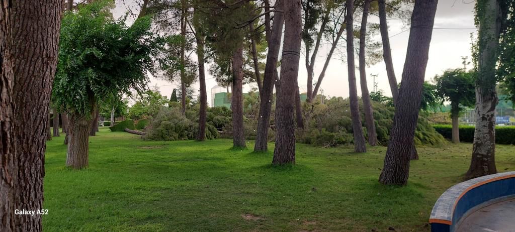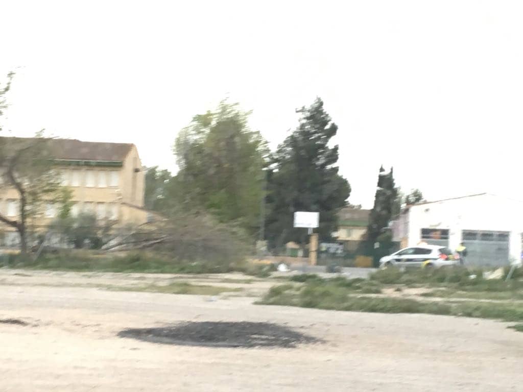 Una especie de tornado, con fuertes rachas de viento han provocado la caída de numerosos árboles en Villena, tanto en el casco urbano como en varios parajes, tales como Casas