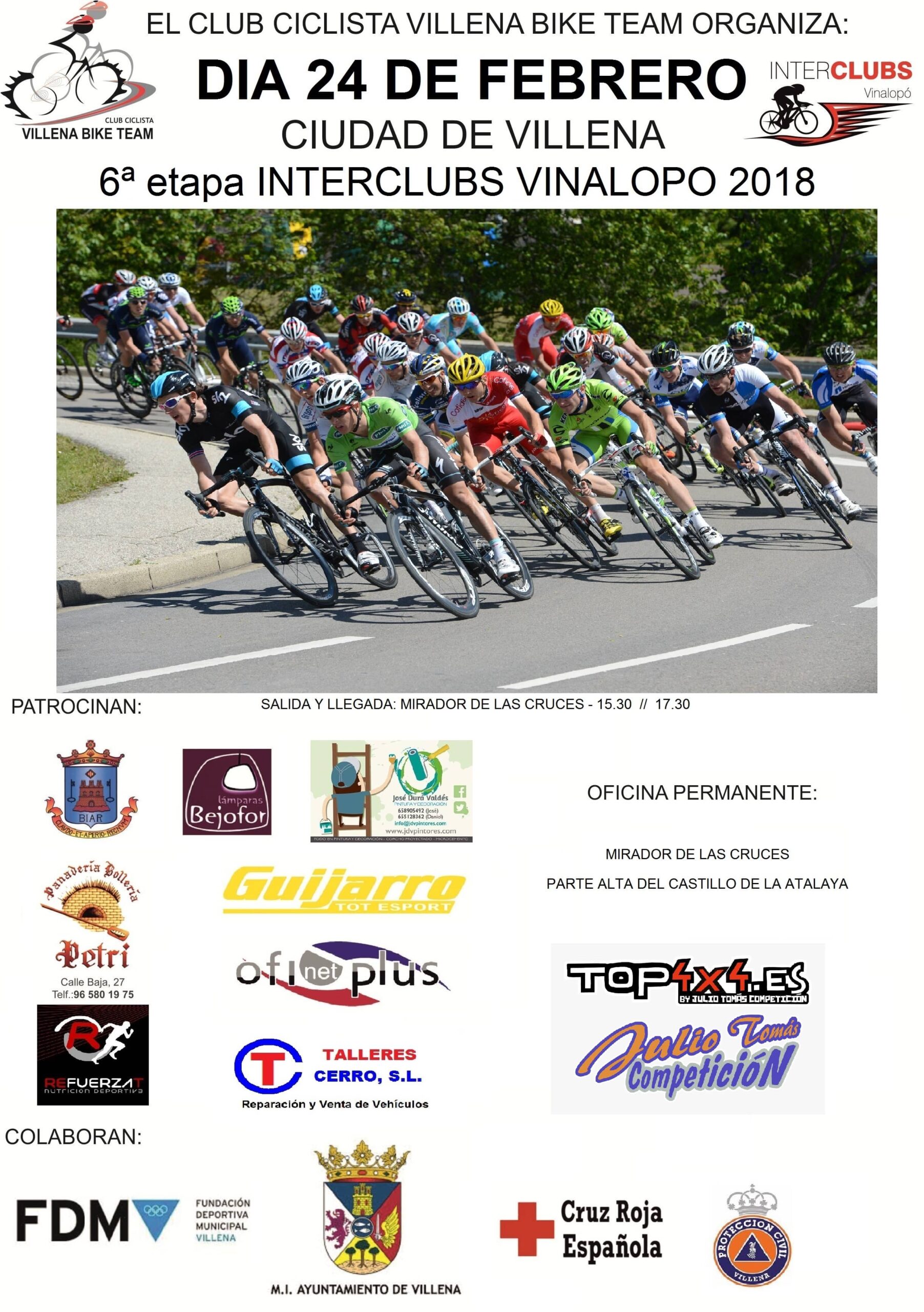 El próximo sábado 24 de febrero a partir de las 15:30 horas y con la organización del club ciclista Villena Bike Team,  se celebrará la 6ª etapa de la Interclubs