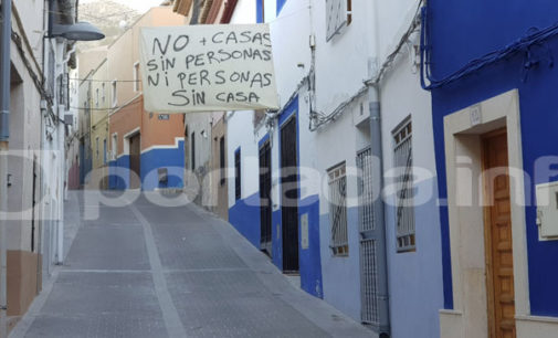 Esta mañana han aparecido dos pancarta en la calle Maestro Moltó en el barrio San Antón en Villena, en el tramo donde mañana 17 de enero una familia será deshauciada