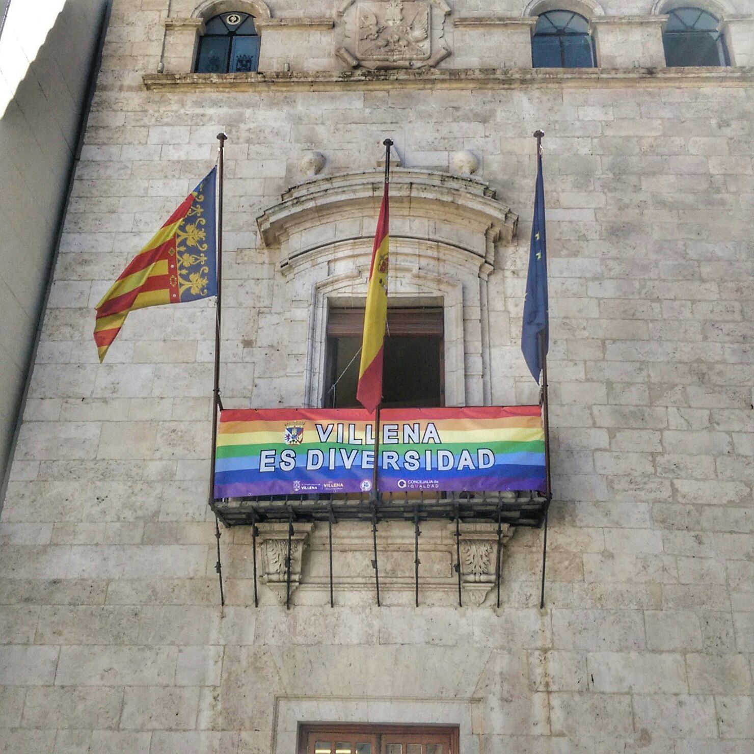 Villena coloca la bandera LGTBI en el balcón como reivindicación de los derechos fundamentales