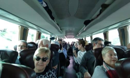 La Plataforma de Pensionistas de Villena camino de Valencia en compañía de compañeras y compañeros de Ibi y Biar para reivindicar el blindaje de las pensiones y las mejoras sociales