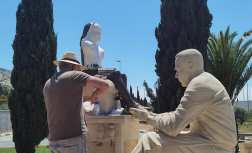Esta mañana ha comenzado la restauración de la estatua que homenajea al sector del calzado en Villena situada en la rotonda de la carretera de Cañada, la cual sufrió actos