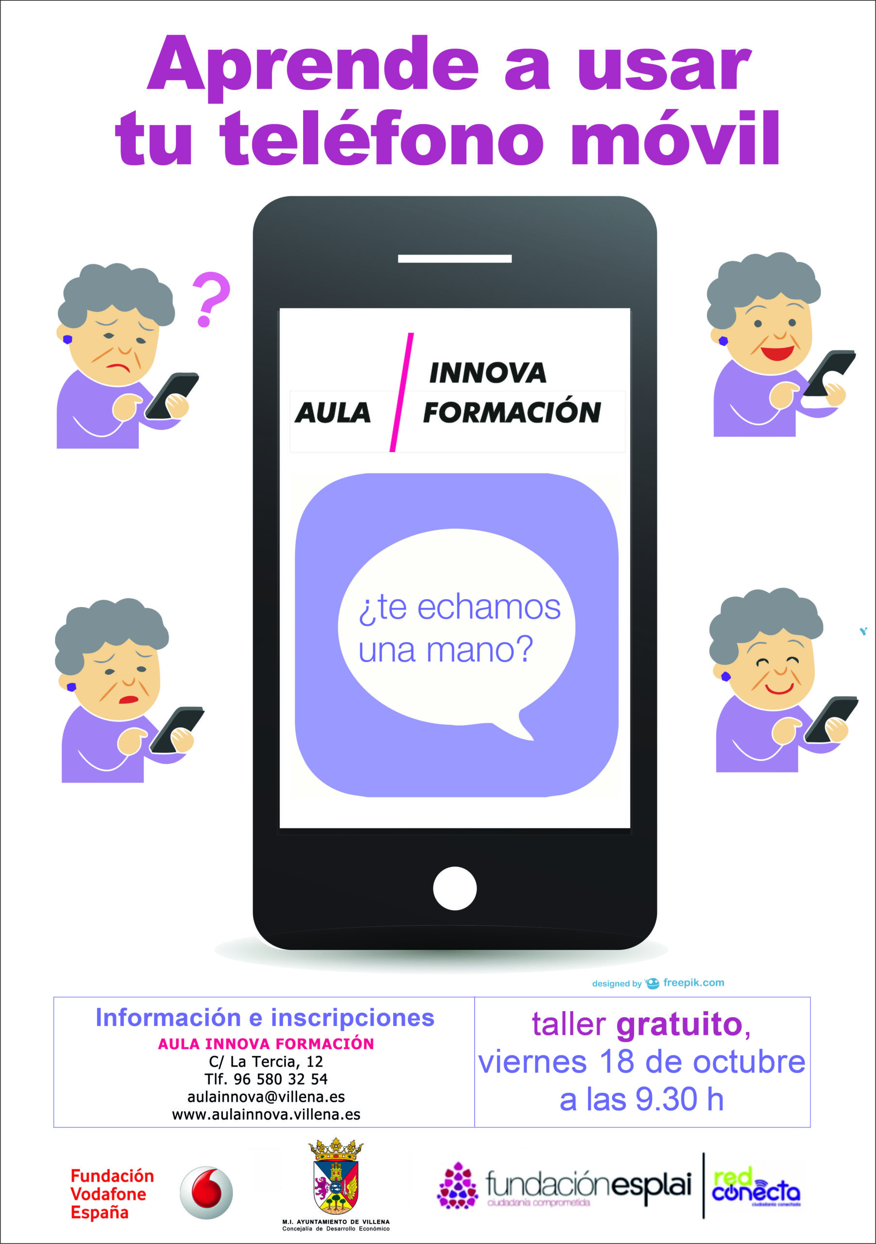 El Aula Innova Formación vuelve a ofrecer un taller gratuito de iniciación en las nuevas tecnologías. Se titula “Aprende a usar tu teléfono móvil” y se trata de un taller práctico dirigido a todas aquellas personas, mayores o no, que necesiten ayuda para aprender a manejar sus teléfonos móviles.