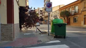El viernes 19 de abril, el consorcio de Bomberos se empleó a fondo debido a los numerosos avisos recibidos por caída de árboles en la vía pública a las fuertes rachas de viento y agua. La fuerza del aire tiró un pino ubicado en la rotonda de la avenida Constitución intersección con la avenida La Paz, también tumbó un pruno en las calles Navarro Santafé y en San Francisco. El parque de la plaza de El Rollo se vio afectado con la caída de uno de los árboles ubicados en este jardín. Por otro lado, se cortó la carretera de Pinoso a la altura de la Boquera por riesgo a que se desbordarse la rambla que cruza esta zona.