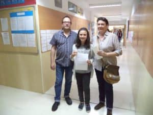 Teresa Soler 1º de ESO realizó un cuento sobre la labor en un laboratorio y el premio consiste en material escolar, medalla conmemorativa y diploma.