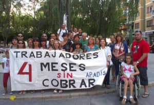 Ayer, 1 de Julio de 2013, los trabajadores de APADIS se volvieron a reunir en la plaza del Rollo para reclamar el pago de las nóminas.