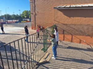 En torno a 15 madres y padres, incluida alguna profesora, no faltan a la cita del sábado para ir pintando las rejas que estaban en un estado lamentable, las paredes que por el paso de los años, necesitaban una mano de pintura y, en fin, todo aquello que sea necesario para que no se deteriore el centro escolar. La Asociación de Madres y Padres compra la pintura y los materiales necesarios, y los voluntarios ponen su trabajo para que el colegio esté en las mejores condiciones.