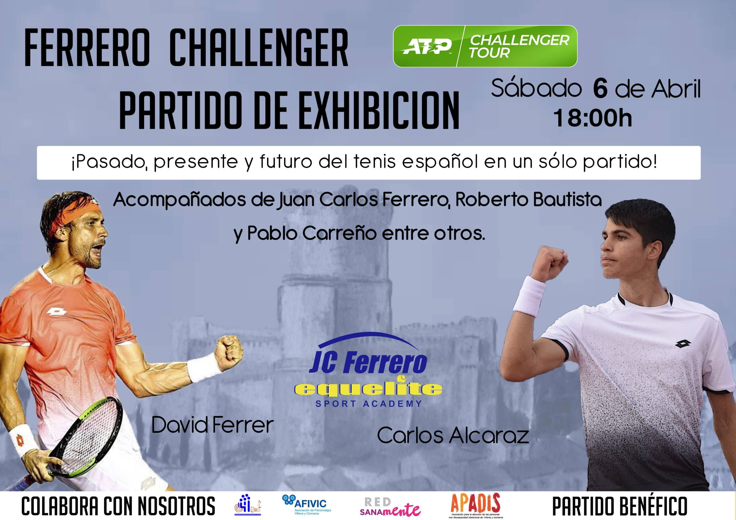 Debido a la previsión metereólogica para la jornada de hoy, la exhibición entre David Ferrer y Carlos Alcaraz se aplaza para mañana Sábado a las 18:00h con la presencia de Juan Carlos Ferrero, Pablo Carreño, etc.