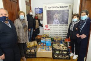 Anteriormente, el pasado viernes 18 de diciembre, también se llevó a cabo la aportación propia que desde la Junta de la Virgen llevamos haciendo varios años, colaborando con una variada cantidad de alimentos de primera necesidad, demandada por parte de Cáritas. Atún, sardinas en aceite, tomate triturado, azúcar, arroz y macarrones… Desde aquí también deseamos agradecer al empresa Zanemi, su aportación a esta causa desinteresada con productos propios, como preparados de cocido y bolsas de zanahorias.