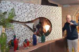 En su exterior se observan caminando sobre tierra batida los tres Reyes magos junto a sus camellos, uno de ellos, descansa en una jaima. También cuenta con una gran fuente que hace un guiño al 30 aniversario que se celebrará el próximo año 2025.