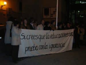 Los profesores leyeron un manifiesto dela Plataforma en defensa de la enseñanza pública donde solicitan la creación de una red pública de atención a niños desde los 0 a los 3 años, plantillas fijas de profesorado para evitar los problemas que supone la interinidad de éstos, así como la creación de 300 plazas de profesores en lengua extranjera para dar clases a niños entre 4 y 5 años.