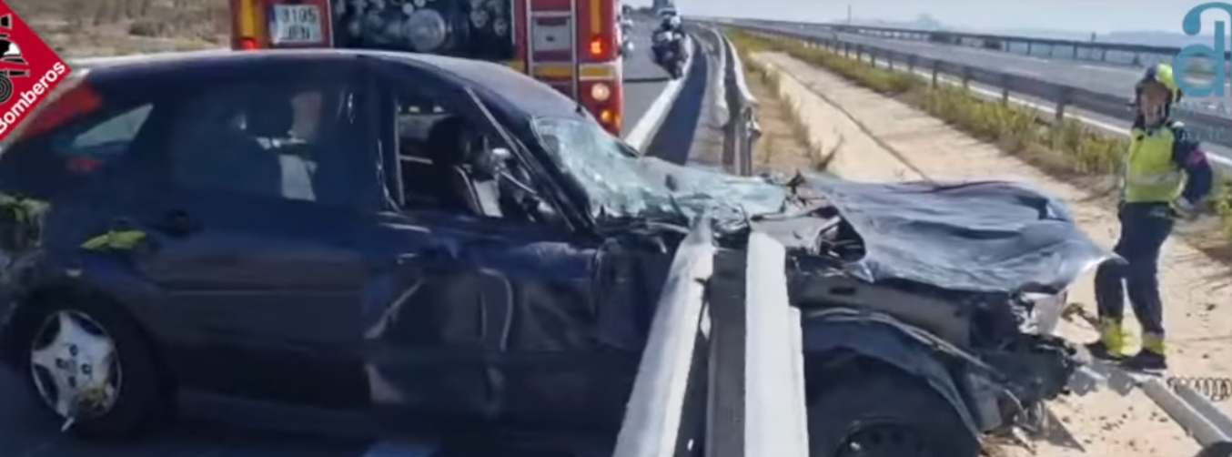 Un coche queda incrustado en el guardarraíl tras un accidente en Villena