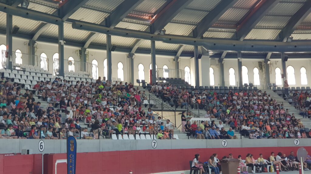 Un millar de alumnos de los centros educativos de Villena de 1º a 3º de Primaria han participado en la fiesta de la Educación Vial que se ha desarrollado esta mañana en la plaza de toros.