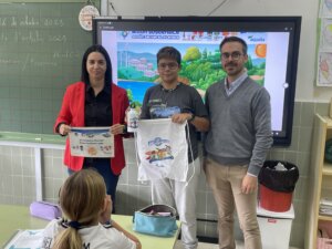 De los más de 9.100 participantes a nivel nacional, Rubén Gutiérrez Luque, del CEIP El Grec, se ha convertido en uno de los finalistas y ha recibido hoy su premio en su propio centro escolar, junto a sus compañeros, de la mano de la concejala de Servicios, Maite Gandía, y del responsable de Aqualia en Villena, Gabriel Morales. El escolar ha recibido una tarjeta regalo por valor de 30€ para material deportivo, una mochila y una botella de agua reutilizable.