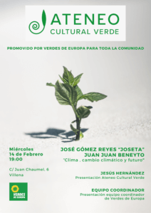 El próximo 14 de febrero, inauguramos este espacio con una interesante charla a cargo de José Gómez y Juan Juan sobre la realidad climática. Nos mostrarán, entre otras cosas datos sobre los cambios que se están produciendo en nuestro clima y que a todos nos preocupan: temperaturas más altas, reducción de las precipitaciones, etc.