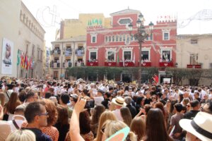 Si bien es verdad que no pude disfrutar plenamente del pregón, ya que el volumen resultó algo bajo para destacar lo suficiente, ante el gran murmullo provocado por todos los presentes en la plaza. Por las reacciones generalizadas, parece que debió de ser interesante. En cuanto a lo que pude entender, sí eché en falta quizá, una composición más literaria del mismo, pero como te decía, el contenido debió de ser interesante en su generalidad, a juzgar por la respuesta de las y los villeneros. Me encantó escuchar a toda la plaza al unísono, cantar lo que me dijeron que era el himno de Villena (así me lo contaron).