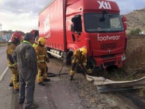 Un vehículo pesado que circulaba en dirección Alicante por la A-31, a la altura de Villena, perdía el control de la marcha y se salía de la citada vía pasado el puente de la Losilla, el vehículo que no volcaba quedo parado en la vía de servicio, afortunadamente no hubo que lamentar daños personales ni del propio chofer del vehículo ni de ningún otro usuario de este transitado punto de entrada y salida de nuestra ciudad. Al lugar de los hechos acudieron de inmediato bomberos del parque de Villena, que tuvieron que cortar parte del quitamiedos que se llevó por delante el camión para que este pudiera ser retirado de la zona por una grúa, así como efectivos de la Policía Local de Villena y Guardia civil de tráfico.