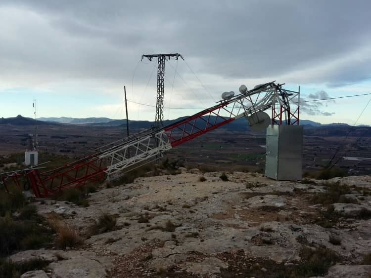 Una de las antenas de la Sierra de la Villa se cae al suelo