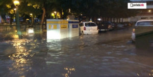 La fuerte tromba de agua que cayó- 45 mm- pasadas las siete de la mañana de hoy lunes anegó la zona oeste de Villena y provocó destrozos en todo el casco urbano.