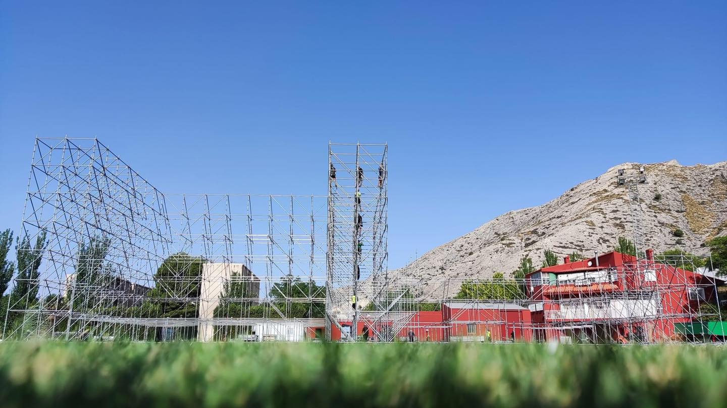 Unas 400 personas trabajarán a pleno rendimiento en la preparación y puesta a punto de los festivales de música- montadores, limpieza, seguridad, técnicos, camareros- que tendrán lugar las dos primeras semanas de agosto en el polideportivo municipal de Villena.