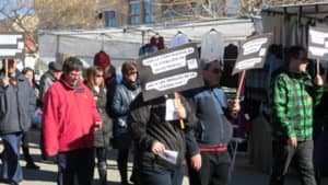 Usuarios y trabajadore del CRIS se reunieron, en esta ocasión en el mercadillo de los jueves en el recinto ferial para volver a demandar a la Consellería el pago de la deuda que tiene con el ayuntamiento de Villena y que asciende a 700.000 euros por la gestión del CRIS.