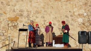 Con anterioridad a la recreación, alumnos del colegio Príncipe don Juan Manuel realizaron una ofrenda floral en el interior de la fortaleza donde se ubicaba la ermita de la Virgen de las Nieves, tras la ofrenda comenzó el acto con un homenaje al profesor villenense de la Escuela de Bellas Artes de Valencia, Inocencio Galindo, fallecido hace unos años. Inocencio fue director de los Simposios sobre Política, cultura y Fe en el Renacimiento y en el Barroco Levantino, investigador de la historia de Villena y de los villenenses, José García Hidalgo y Antonio de Torreblanca, promotor del grupo de recreación histórica “Tercio Viejo Alonso de Contreras”.
